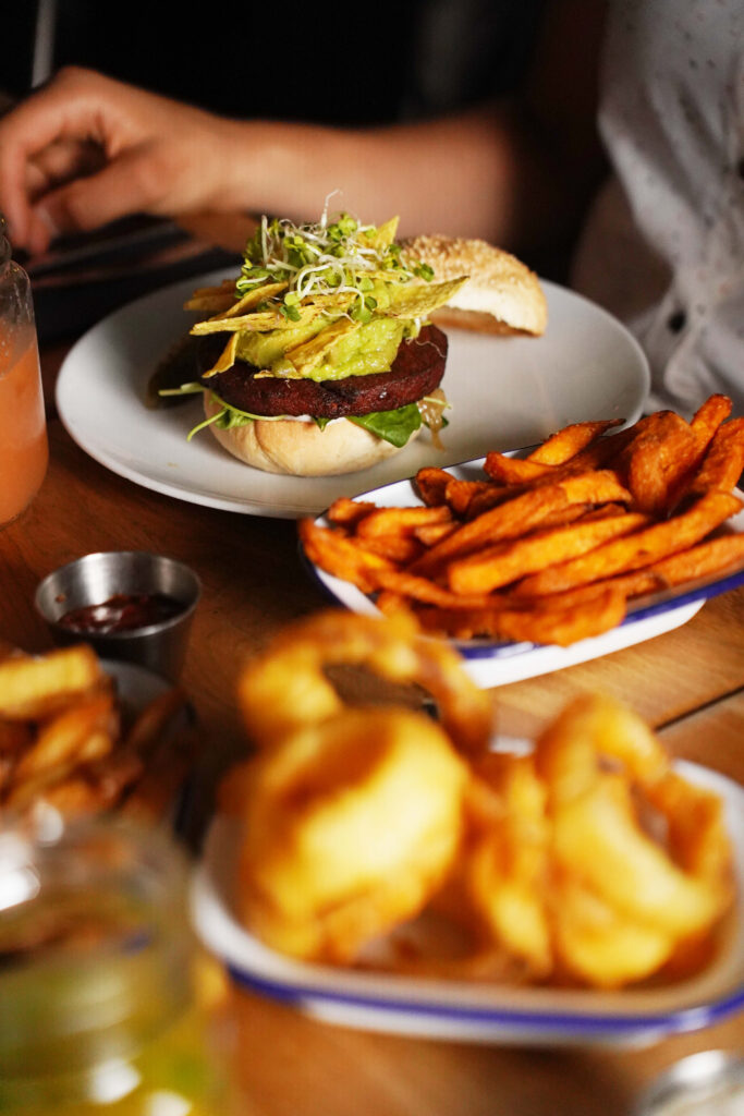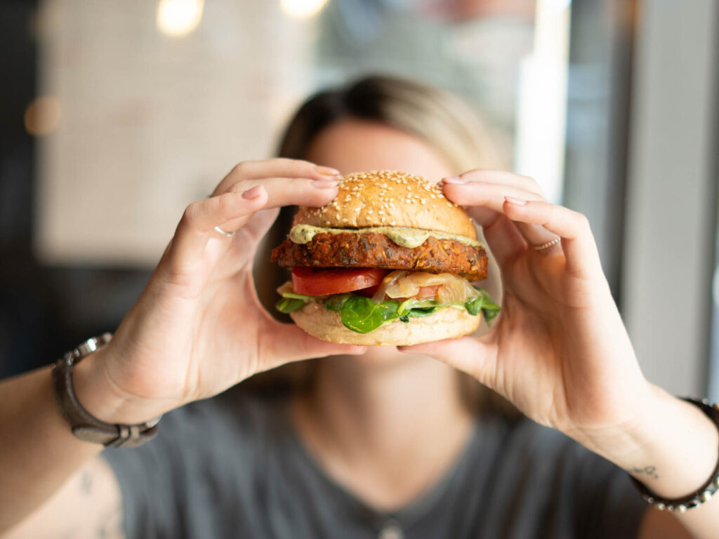 Schicht für Schicht kommen bei uns nur frische, natürliche Zutaten auf deinen Burger, ganz ohne Kompromisse. Saftige Tomaten, knackiger Salat, karamellisierte Zwiebeln und unsere unwiderstehliche, hausgemachte vegane Mayonnaise machen den Unterschied. Dazu gibt‘s eine bunte Vielfalt an kreativen, hochwertigen Beilagen – so schmeckt echter Veggie-Genuss!